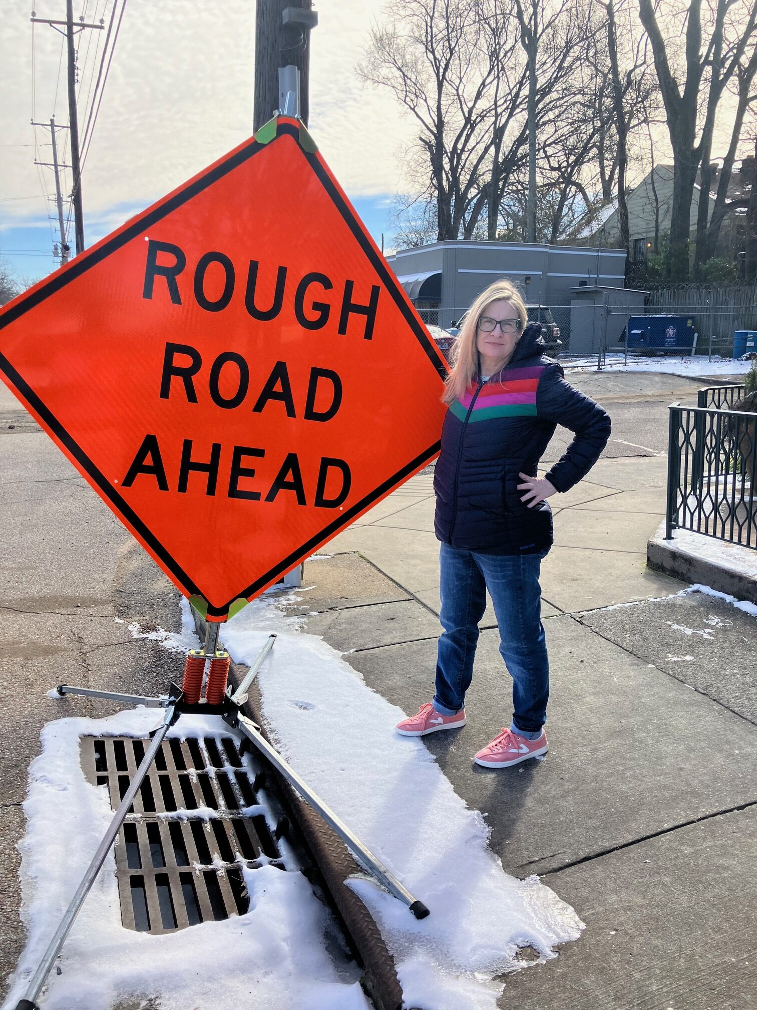 The sign appeared overnight in front of the studio, making me laugh at its accidental life commentary. It was like the Department of Transportation had a side gig in fortune-telling: ‘Just so you know, things might get even more challenging ahead.’